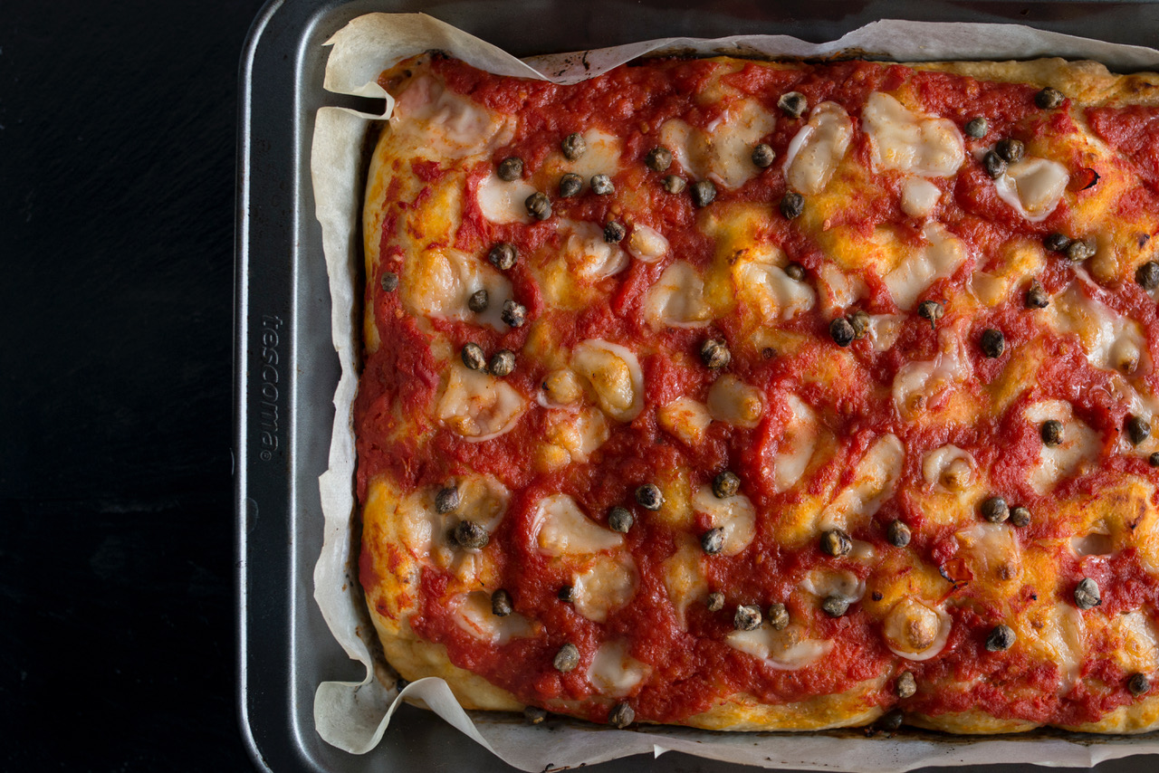Era una di quelle giornate lente, grigie, dove il massimo sforzo era mettere il caffè sul fuoco. Il frigo vuoto tranne per un panetto di lievito, una passata di pomodoro, qualche cappero e… magia: un impasto iniziato per caso si è trasformato in una delle mie pizze preferite di sempre.