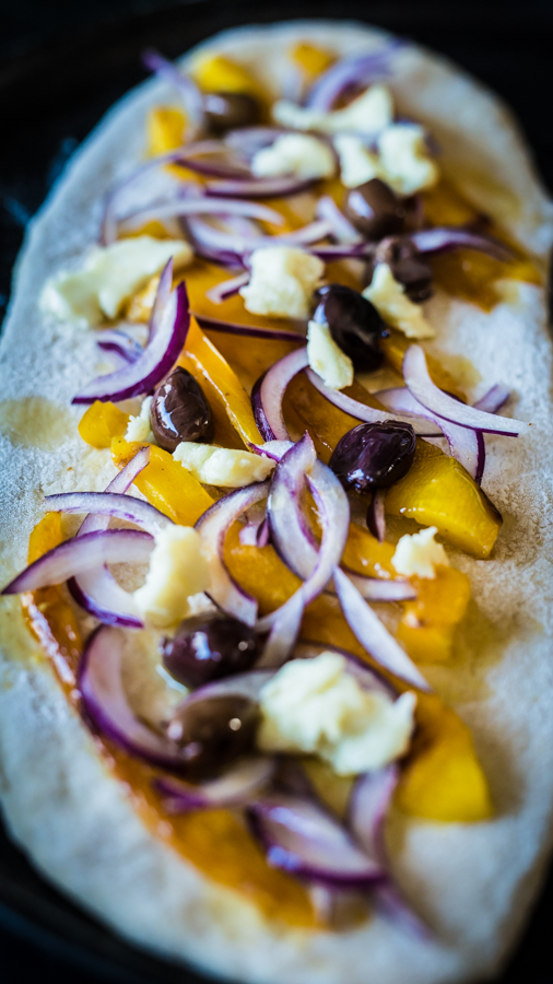 PIZZA PEPERONI, CIPOLLA, TAGGIASCHE CON CHICCA FUME’