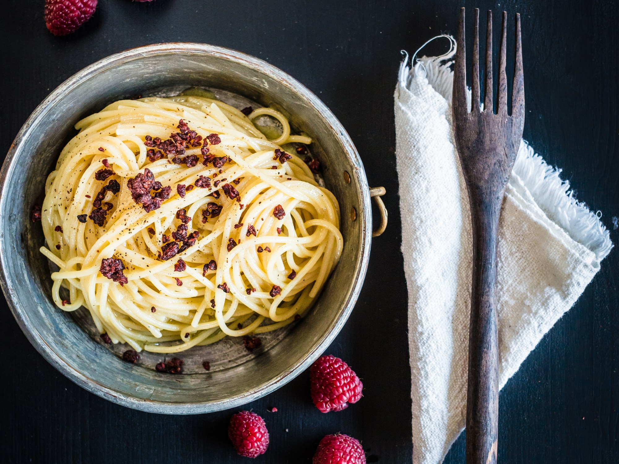 Grazie a Verys ho cercato di ricreare uno dei miei piatti preferiti di quando ero vegetariana. La cacio e pepe con lamponi. Se l’avessi vista proposta su di un qualsiasi menù non l’avrei mai ordinata. Mi è stata servita senza se e senza ma… SPAZIALE!