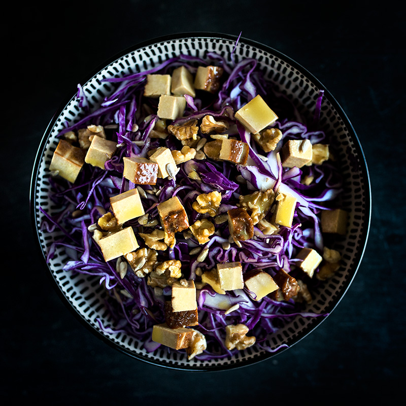 INSALATA DI CAVOLO VIOLA E TOFU AFFUMICATO